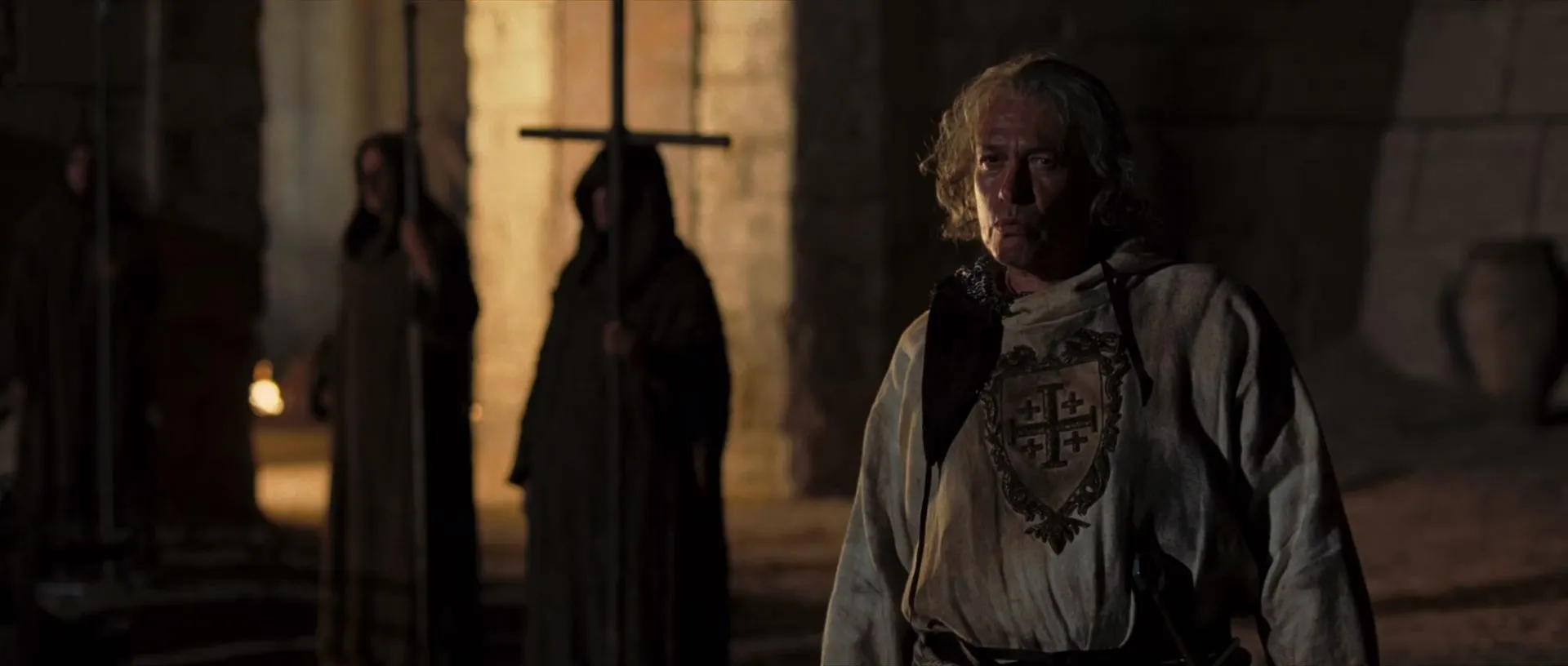 Actors: Orlando Bloom as Balian de Ibelin, Eva Green as Sibylla, Liam Neeson as Godfrey de Ibelin, Jeremy Irons as Tiberias, David Thewlis as Hospitaler, Marton Csokas as Guy de Lusignan, Ghassan Massoud as Saladin, Brendan Gleeson as Reynald de Chatillon, Edward Norton as King Baldwin, Michael Sheen as Priest, Alexander Siddig as Nasir, Khaled El Nabawy as Mullah, Nikolaj Coster-Waldau as Village Sheriff, Kevin McKidd as English Sergeant, Velibor Topic as Almaric, Jon Finch as Patriarch of Jerusalem, Ulrich Thomsen as Templar Master, Jouko Ahola as Odo, Shane Attwooll as Reynald's Templar Knight, Peter Cant as Peasant Boy, Nathalie Cox as Balian's Wife, Emilio Doorgasingh as Saracen Engineer, Samira Draa as Sibylla's Maid, Ériq Ebouaney as Firuz, Giannina Facio as Saladin's Sister, Iain Glen as Richard Coeur de Lion, Philip Glenister as Squire, Martin Hancock as Gravedigger, Lotfi Yahya Jedidi as Old Ibelin Housekeeper, Nasser Memarzia as Muslim Grandee, Steven Robertson as Angelic Priest, Matthew Rutherford as Rider, Karim Saleh as Saracen Messenger, Michael Shaeffer as Young Sergeant, Bronson Webb as Apprentice, Angus Wright as Richard's Knight, Tim Barlow as Old Guard (director's cut), Paul Brightwell as Son of Roger de Cormier (director's cut), Peter Copley as Old Pilgram (director's cut), Bill Paterson as Bishop (director's cut), Robert Pugh as Godfrey's Elder Brother (director's cut)